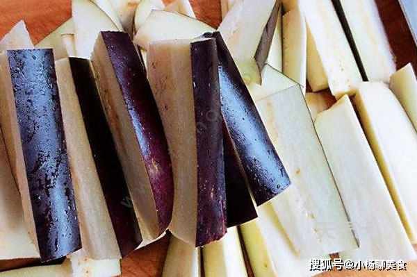 第三步,將茄子撈出來之後,我們需要將茄子的尾部切除,然後再將茄子直接切成手指那麼粗的茄子條,這個時候建議大家不要去皮兒,因為茄子皮的營養會比我們吃到了茄子肉的營養價值更高,最好是要帶皮兒的時候做成茄子幹兒,這樣的話口感才會更加的好吃。