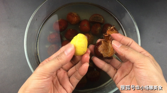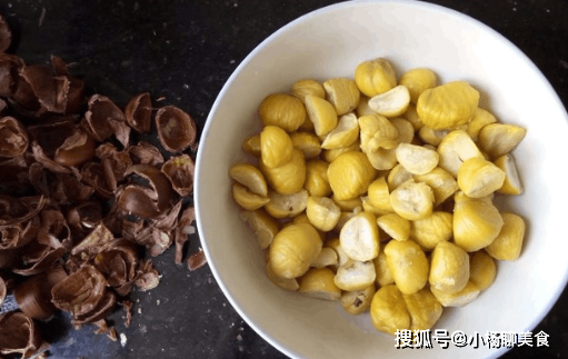 這就是大家為什麼不剝皮兒的時候覺得很難,當然,也有的人在板栗煮熟之後,他覺得沒必要去剝皮兒的話,這個時候如果大家後面放凉之後,可以先用熱水去浸泡一下板栗,然後這個板栗殼就會變軟,受熱的話板栗殼就會變軟,然後我們直接再去剝一次就可以,也可以輕鬆地剝開的,哪種方法好用大家就用哪一種方法吧。