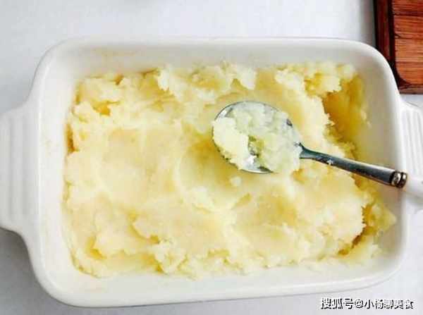 第四步,準備好蒸鍋,將我們切好的洋芋塊放在蒸鍋裡面開始蒸熟,大約蒸上八分鐘左右就可以直接將洋芋給蒸熟了,蒸熟之後,稍微放凉一點之後,我們再用一個小勺子將洋芋給搗成土豆泥。