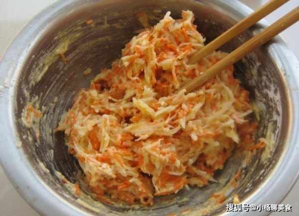 食材:白蘿蔔、胡蘿蔔、麵粉、雞蛋、香葱、生抽、胡椒粉、十三香、食鹽、食用油、水。做法步驟: