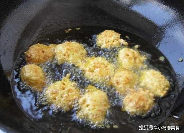 3、炸的時候用中火,然後丸子下鍋之後不要著急翻面,一定要炸至定型之後再進行翻動,不然丸子很容易散。炸至金黃即可撈出,不用炸太久,不然會發苦。