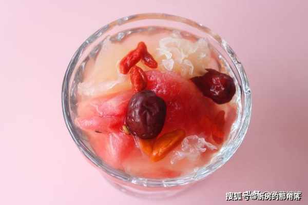 【食材】:銀耳1小朵、梨子1個、紅棗1把、桂圓5個、枸杞1勺、西瓜1塊。