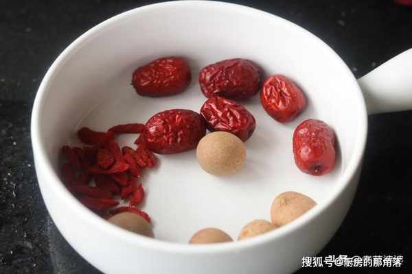 步驟2,把紅棗、桂圓、枸杞拿出來,剝去桂圓的殼,用清水將三者沖洗乾淨。