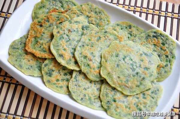 3、鍋熱後倒入比炒菜稍多一點的油,晃一下鍋,讓油均勻鋪滿鍋底,用勺子舀出適量的麵糊放入鍋中,可用勺底整理一下餅,中小火煎,待餅底凝固後翻面,煎另一面,兩面都煎到有點微黃就可以出鍋啦!