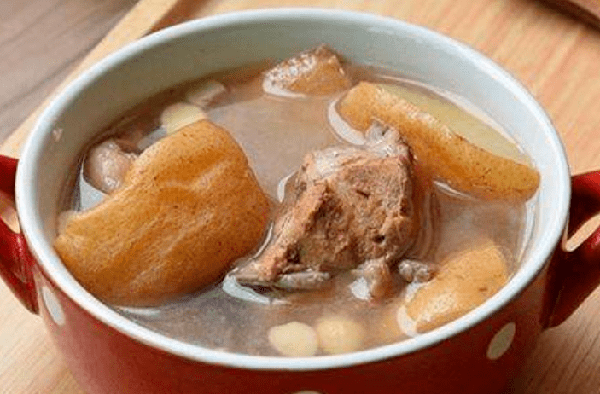 3歲以上消化好、無病痛時對證、少量多次分食,每次食用半碗,消化好的情况下,可以吃少量排骨和梨肉。每週1次。
