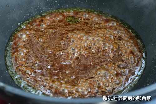 3.將油鍋裏的油倒出來,就留一點底油便可,接著下入八角炸香後撈出,放入葱薑炒香,隨後沿著鍋邊烹入生抽、香醋、蚝油炒香,再添入適量的清水,等待開鍋。