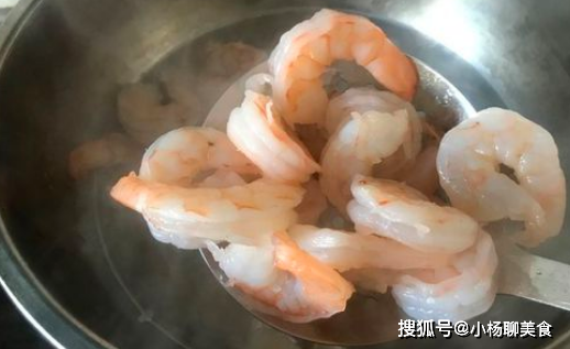 第四步,起鍋燒水,水燒開之後,先將我們剛剛準備的蝦仁放入鍋中,開始焯水去除腥味,然後再將我們剛剛準備好的香菇放入鍋中,一起焯水,焯水過程中加入一點鹽和胡椒粉,大概煮上兩分鐘撈出來放在冷水中過一遍。