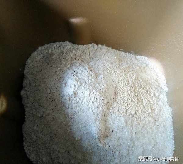 第一步,首先我們肯定要先準備好食材:中筋麵粉、酵母、黑全麥面粉、溫水等。