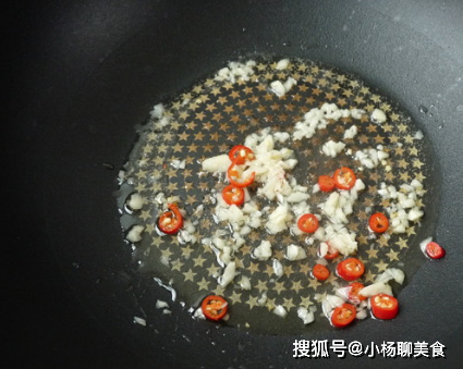 第二步,起鍋燒油,油溫上來之後,直接將蔥花以及辣椒末和生薑末一起放入鍋中開始爆香,有明顯香味之後,先將我們切好的白菜幫放入鍋中開始爆炒,因為白菜幫它是比較厚的,不容易炒熟,所以需要先將白菜幫放入鍋中開始的炒熟。