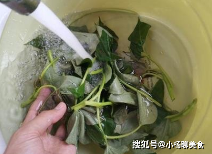 第二點,將紅薯葉子浸泡好之後,放在清水中先清洗乾淨,一般清洗兩遍就可以了。