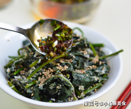 第五點,做調味品,準備一個乾淨的小碗,碗中切入一點大蒜末,然後加入米醋、生抽、白糖、辣椒油、食鹽攪拌均勻,等到將紅薯葉子蒸好之後,直接淋在紅薯葉子上就可以啦!在吃的時候只需將這些調料都攪拌均勻就可以了。