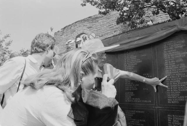 △1988年,一些為修復長城捐款的外國來賓高興地在紀念碑上找到了自己的名字。
