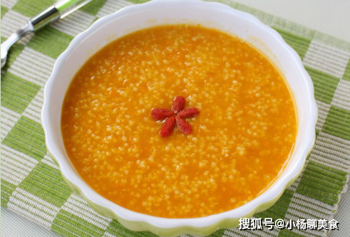 自古就有秋食南瓜勝良藥的說法,入秋要先健脾,而南瓜性溫,味甘入脾,是蔬菜中不可缺少的健脾食物,從營養學來講,南瓜,所含成分能促進膽汁分泌,加强胃腸蠕動,幫助食物消化。小米,"治反胃熱痢,煮粥食,益丹田,補虛損,開腸胃。囙此小米有健胃消食的作用。早餐來一碗南瓜小米粥,不僅適宜秋季人體胃腸溫補的需要,營養更均衡,更養胃,補血潤燥,味道清甜。