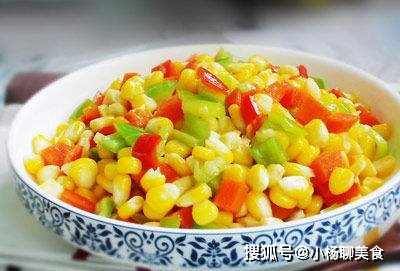 甜玉米1根,紅椒半個,青椒半個,胡蘿蔔1小段,五香粉少許,鹽適量,油適量,