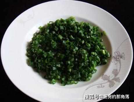 第二步,擦好的南瓜絲放入一個稍微大點的容器中,同時再準備一兩根香葱,將其擇去不能食用的部分,清洗乾淨後,切成細細的末,放入在盛有南瓜絲的盆中;