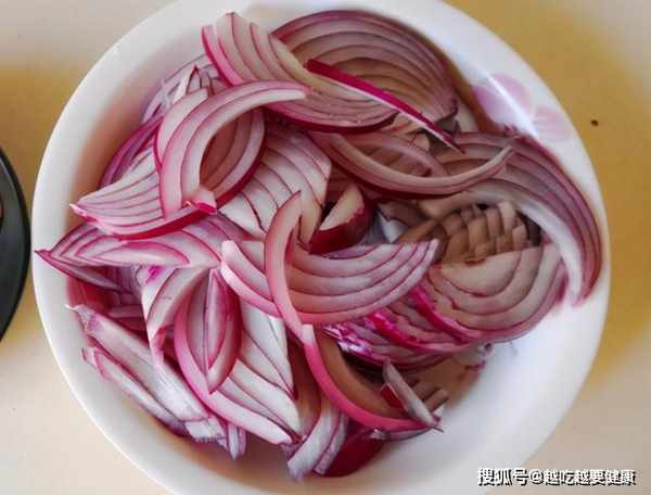 第四步,洋葱切成絲,炒鍋中添油燒熱,放入猪肉快速煸炒下,炒至肉絲發白變色的時候,將洋葱放入鍋中,快速翻炒下,加上點料酒翻炒均勻;