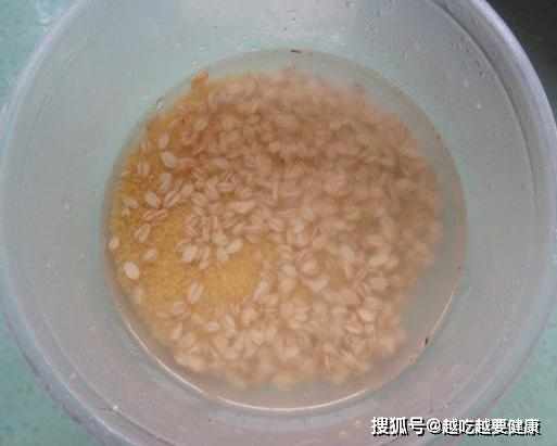 第一步,小米和燕麥用水淘洗乾淨後,放在水中浸泡一會;
