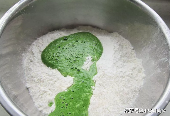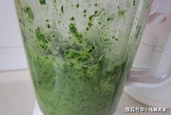 首先把買貴了的菠菜清洗乾淨,然後用開水燙一下,然後用料理機攪拌成菠菜泥。