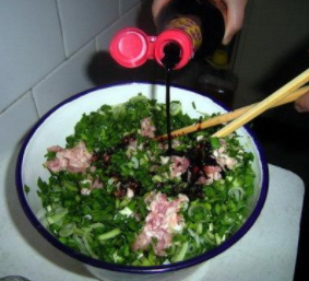 我們包水餃或者是包子餡兒料的時候是不應該放醬油的,醬油的作用,一是可以增鹹,二是可以上色,但是我們在調水餃餡兒或者是包子餡兒的時候用鹽就可以了,上色這一步也是不需要的。如果我們放了醬油會影響餡的顏色,看起來都是紅紅的並不好看,而且醬油本身有一股醬香味兒。放在餡料當中會影響其它食材的口感和味道。尤其是調素餡的時候醬油會侵入到蔬菜裡面,讓蔬菜失去本身的味道而全部都變成了醬油的味!就拿我們平時最常吃的白菜猪肉餡兒來說,我們需要準備的食材就是白菜,猪瘦肉,鹽,雞精,蚝油,食用油,十三香。把白菜切成末,猪肉也切成末,然後先把猪肉放在盆中,分三次打入一些清水,這樣讓調出來的猪肉餡兒會更加的嫩滑。