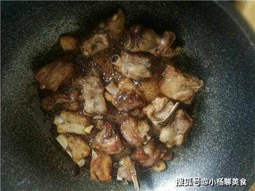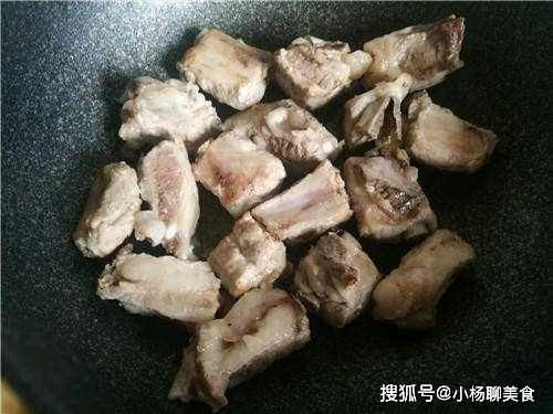 步驟2:因為排骨浸泡過了,所以就不需要在焯水了,囙此直接開始炒排骨。在鍋中倒入一點點的油,先倒入薑片然後倒入瀝幹水分的排骨,接著開始炒排骨,將排骨炒到已經開始焦黃後就停止翻炒,然後就可以到調料。