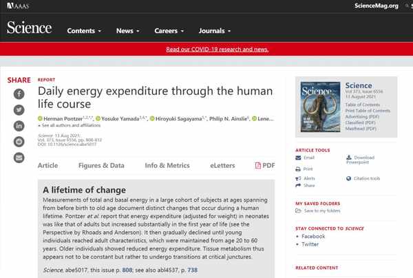 這篇論文採集了來自29個國家地區6400多人的代謝數據,首次全面分析了從出生到衰老,人的日常能量消耗(每天燃燒多少卡路里)在一生當中是如何變化的,從而推翻了很多之前的科學研究。