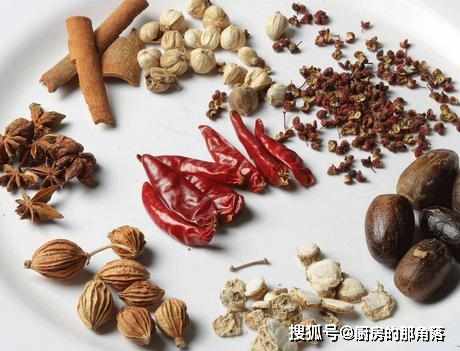 第二步,炒鍋中放上薑、大料、花椒、白醋、幹辣椒、香葉、鹽、雞精和糖,加上適量的清水;