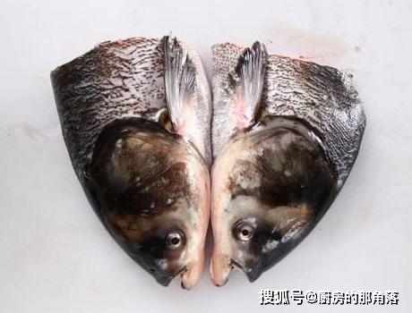 第一步,首先將準備好的魚頭,用清水沖洗乾淨後,切成兩半,注意魚頭背要相連;