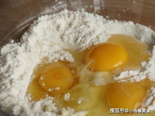 我們在盆中加入兩百克麵粉,然後加入幾個雞蛋。放一些白糖和酵母,然後用攪拌器攪拌均勻,再加一些食用油。慢慢調和之後將麵粉揉成光滑的麵團,蓋上保鮮膜之後慢慢發酵,發酵的時候一定要注意溫度,溫度如果太低的話是不能發酵的。