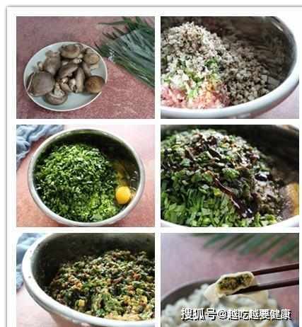 1.香菇切碎末,韭菜切碎丁,肉餡一斤。