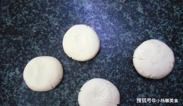 第二步:製作糯米餅。如果說糖漿是靈魂,那這就算是這道小吃的肉身了,口感方面完全取決於你這一步的質量。首先你需要向已經準備好的糯米粉中混入適量的鹽分,然後為其注入適量的糖漿。以糖漿代替水分,將糯米粉揉製成團。揉到什麼程度就取決於你想要吃到多勁道的糯米糍粑了。想要吃的勁道一點就多揉會。待你覺得差不多的時候將其取出分成均等的小段,摁壓成餅狀。