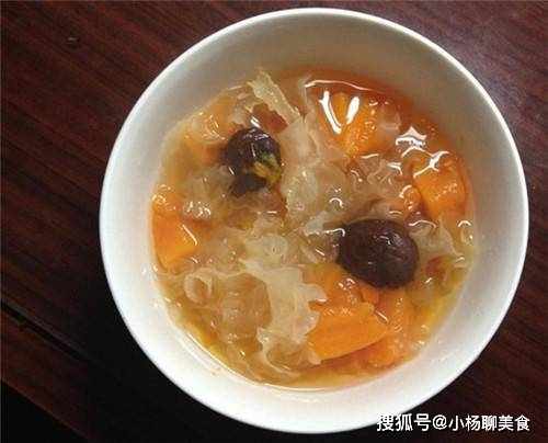 一份入口清甜有嚼勁的銀耳木瓜湯就祝好了,不僅好喝,同時還十分的有營養。所以小吃認為平常在煮銀耳的時候可以加上木瓜一起煮,不僅能讓皮膚嫩滑水潤,而且還能延緩衰老,减齡。所以有時間的時候可以煮上一鍋,並且還可以加上紅棗、枸杞一起煮。