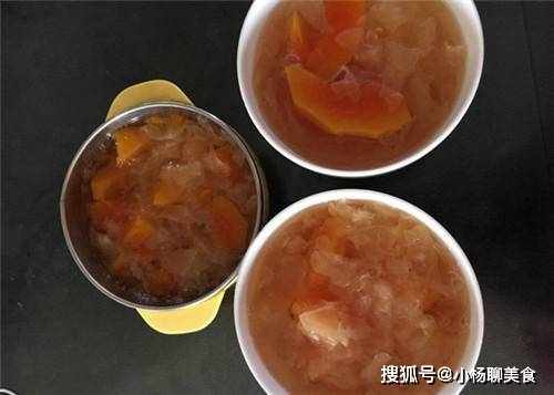 而且銀耳和木瓜搭配也是再次放大了營養,木瓜很多人都知道能豐胸,而除開這個功效外,木瓜也是一個能美容養顏,抗衰老的食材。並且這碗湯也適合夏天,不僅能讓皮膚變得水潤,還能延緩衰老。再者這碗湯不僅有燕窩的效果,價格也比燕窩會便宜上非常的多,囙此這碗湯也是窮人的减齡湯,所以女性可以常吃。再者銀耳木瓜湯的做法也十分的簡單,就只需要簡單的將食材放入到鍋中燉就行。那下麵小吃就將整道湯的做法給大家說說,大家可以跟著一起做。