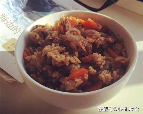 食材:牛肉、米飯、胡蘿蔔、枸杞、料酒、鹽、雞精、孜然、幹辣椒、香葉、薑、蒜、生抽。