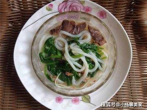 食材:米粉400g、五香牛肉20g、炒肉末50g、植物油30、香菇1個、杏鮑菇10g、豌豆苗30g、鹽3g。