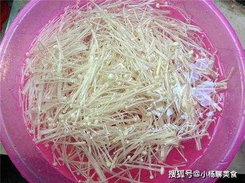 步驟1:先取出金針菇,將它放入清水中清洗,在清洗的時候需要將金針菇給掰開,同時金針菇的根部也需要切掉。在將金針菇清洗掉有可能存在的泥沙後,就撈出來放在菜篩中瀝幹水分,然後準備起鍋。