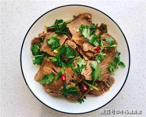 食材:牛肉150克、生薑+大蒜+幹辣椒粉適量、葱+香菜適量、胡椒+味精+醋+糖+生抽適量、食用油+小麻油適量。
