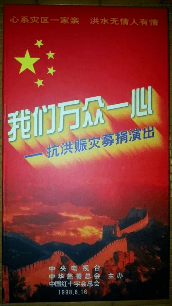 △98抗洪賑災義演《我們萬眾一心》由中央電視臺、中華慈善總會和中國紅十字會主辦