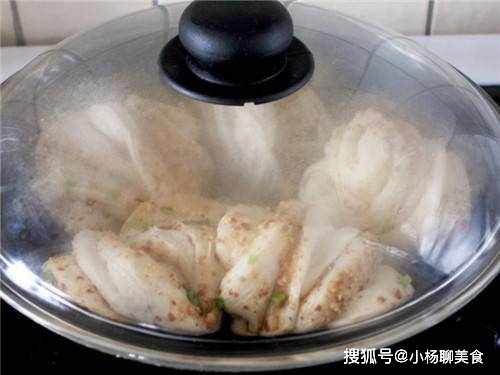 步骤3:然后沿着长边将面饼卷起来,接着将长条的面棍,用刀子切成小剂子,做成小花卷。然后取出锅,在锅中刷上油后就将花卷都放进去,接着盖上盖子,发酵上20分钟。时间一到就倒入温水,开大火开始煎,煎上10分钟,在焖一会就出锅了。