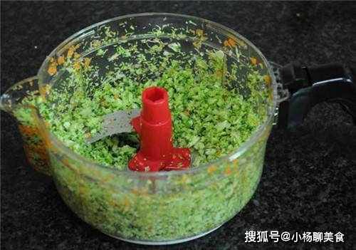 步骤1:取出西兰花,掰下几朵之后将西兰花放入清水中清洗干净,接着将西兰花扔入搅碎机中,将它绞碎,放在一旁备用。其他的配菜也是一样,同样需要绞碎备用。没有搅碎机,就用刀切碎就行,也是一样的。